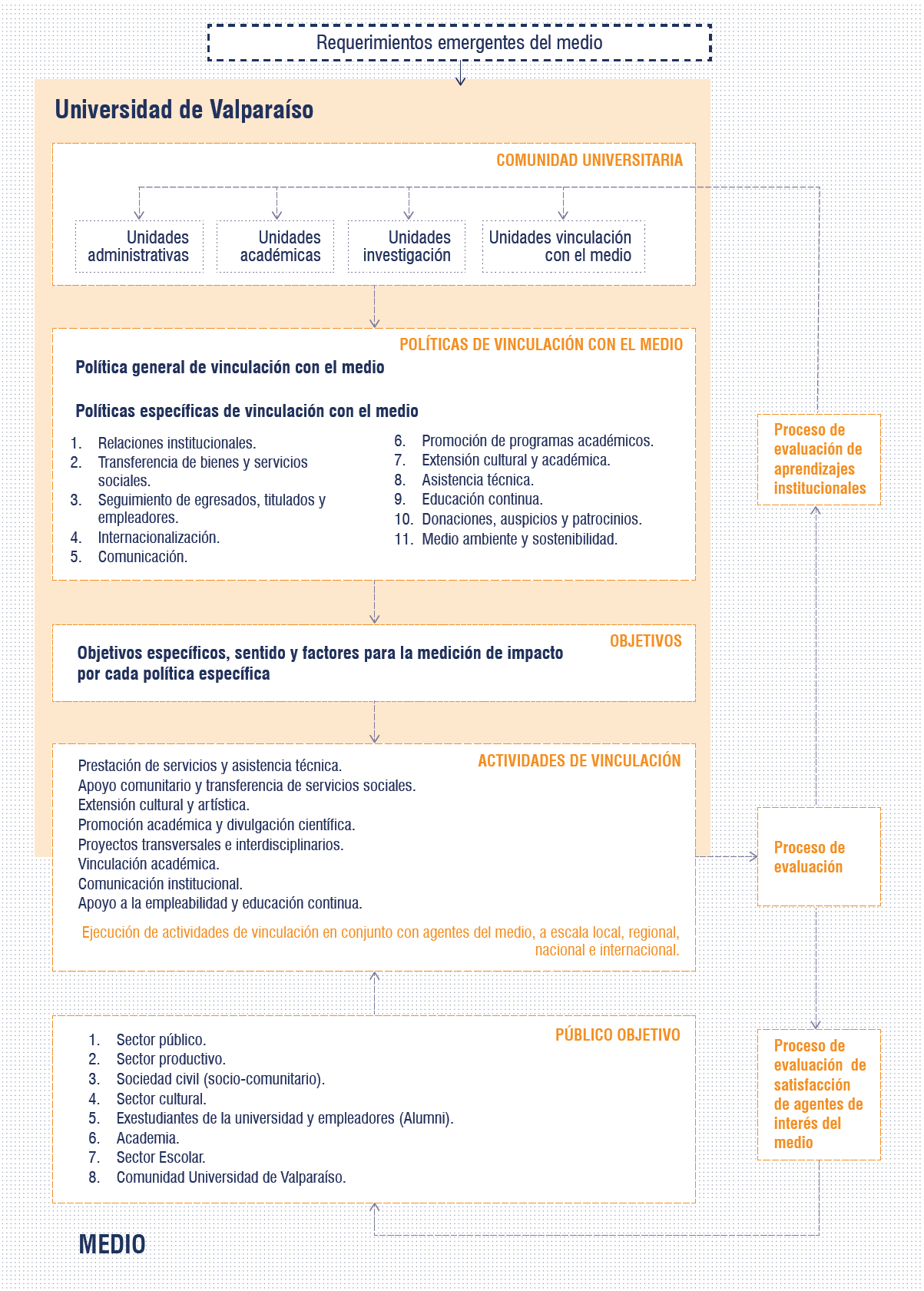 - La carrera define y prioriza las actividades de vinculación con el medio en aquellos campos de interacción que son demandados por los grupos sociales y son pertinentes a su ámbito, estableciendo los objetivos precisos de las actividades de vinculación con el medio.
